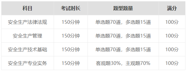 专业科目试题包括专业安全技术和安全生产案例分析两部分。专业安全技术部分题型为客观题,均为单项选择题,占分值的20%;安全生产案例分析部分题型包括客观题(占分值的10%)和主观题(占分值的70%)客观题为单项选择题和多项选择题,主观题为综合案例分析题。