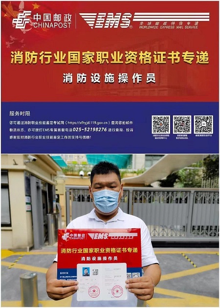 为提升职业资格证书发放时效,从即日起,我中心委托中国邮政速递EMS开展证书邮寄业务,实行“送证到家”服务。有需求的考生可登录我中心官网,在【个人资料】中登记收件地址信息和联系电话。证书邮寄前,邮政公司将联系考生预留电话核对本人信息,请留意客服电话025-52198276或通知短信。