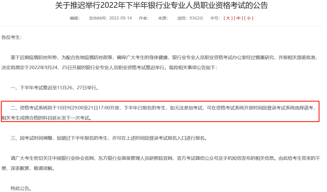 如果考生不能参加2022下半年考试,可以选择退考。中国银行业协会发布的考试公告上已明确说明退考时间,考生只需在规定的时间内退考即可。
