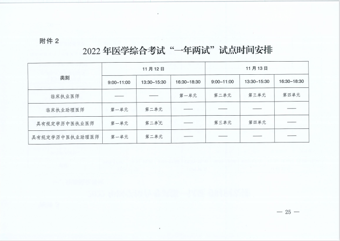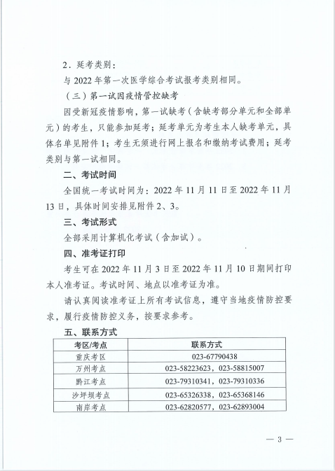 重庆考区2022医师资格考试综合笔试“一年两试”考试安排: