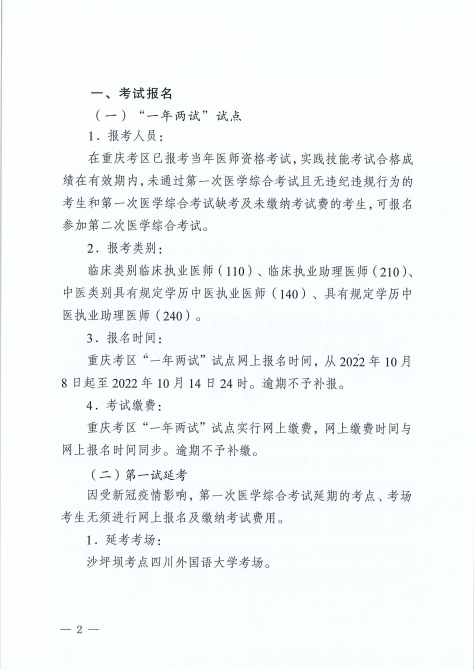 重庆考区2022医师资格考试综合笔试“一年两试”报名时间|要求已经公布!专门整理了官方通知要求如下,请相关考生及时查看!